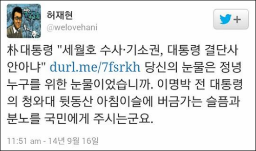 박근혜 대통령이 16일 수사권·기소권이 포함된 세월호특별법 제정 요구와 관련해 “대통령으로서 결단을 내릴 사안이 아니다”고 말해 야당과 네티즌들의 거센 비난을 받고 있다.