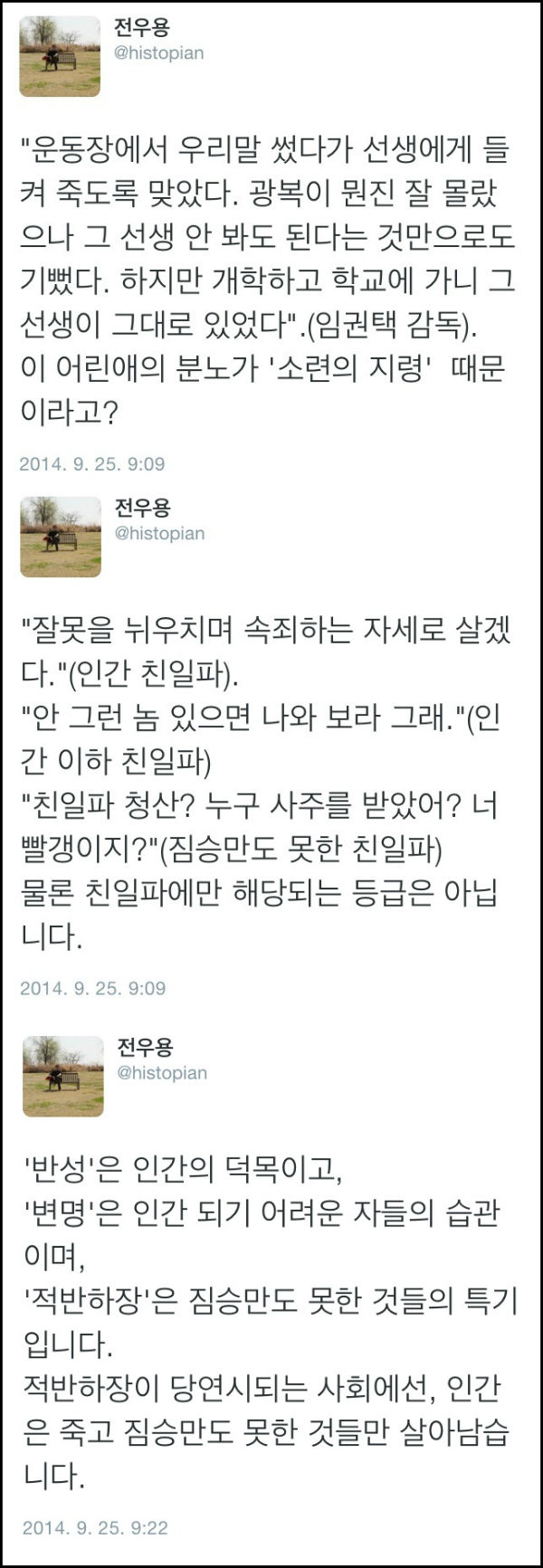 네티즌들도 “이인호 KBS 이사장이 해방 직후 친일파 청산을 “소련에서 내려온 지령”이라고 강변했군요. 반민특위는 지배당한 어느 나라라도 당연히 시행하는 자주입니다. 정말 부끄럽군요”(@hee****), “친일파 청산 말하면 빨갱이라고?”(@kan****), “할아버지보다 더 노골적인 친일 망언 이인호는 사퇴하라!”(@seo****)라며 비판했다.