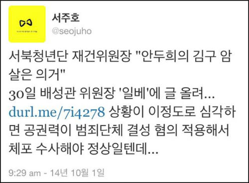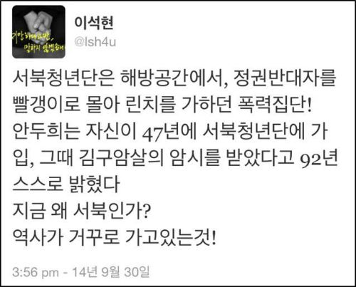 일베에 위원장 명의 글 게시.. “안두희 종북좌익정권 때 맞아죽어”