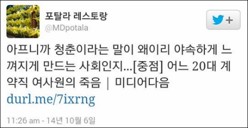 결국 권 씨는 비정규직의 설움을 토로하고 어른들을 원망하는 유서를 남기고 세상을 떠났다.