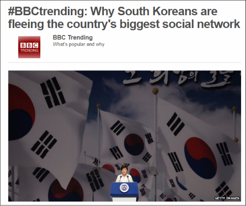 영국 <BBC>가 한국에서 벌어지고 있는 ‘사이버 망명’ 현상을 소개하며 그 원인으로 박근혜 정부의 카카오톡 사찰 논란을 지적했다.