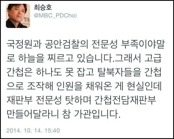 더욱이 이러한 공안전담 재판부 신설은 검찰 뿐만이 아니라 국정원도 요구하고 나선 것으로 전해졌다. 지난 8월 국정원은 “공안 사건의 특수성을 고려해 법원에 전담 재판부를 둘 필요가 있다”는 취지의 진정을 청와대와 정치권에 수차례 냈다.