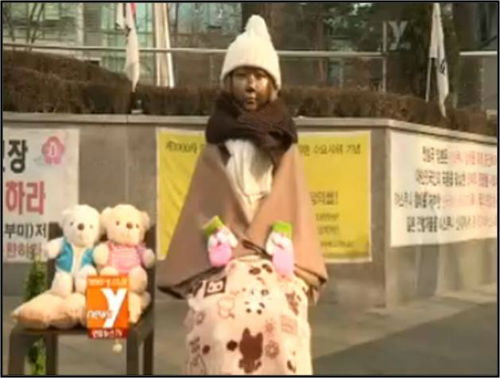 김 씨는 “직접 가져와 빨고 어울리는 색깔을 맞춰서 가져간다”며 “할머니들이 수요집회 외에 소녀상이 혼자 있는 걸 많이 신경 쓰신다고 한다”고 말했다. 그는 “아마도 본인들을 상징해서 만들어 놓은 거라 마음이 많이 쓰이시는 것 같아 늘 보살핌 받고 있다는 느낌을 주고 싶다”고 밝혔다.
