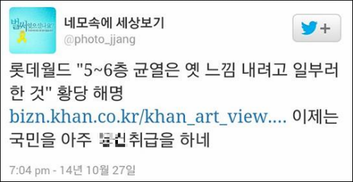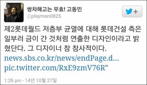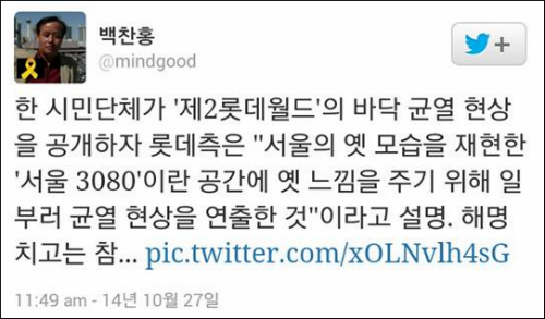 제2롯데월드 저층부에서 균열이 발견된 가운데 시공업체 롯데건설측이 황당한 해명으로 논란을 일으키고 있다.