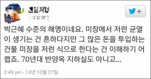 그러나 바닥 균열 문제를 처음 제기했던 송파시민연대는 이날 “현장에 다시 가보니 바닥에 균열이 생겨 금이 간 정도가 아니라 조각으로 갈라지고 있었다”며 “(일부러 균열을 만든 뒤 코팅 처리를 한 것이 아니라) 코팅 처리한 이후에 균열이 생긴 것 같다”고 지적했다.