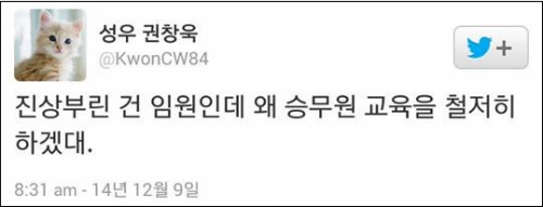 이에 네티즌들은 “사과가 아니고 변명이네”(dirh****), “사과문을 보니 잘못은 높으신 한 분이 하시고 교육은 애꿎은 많은 승무원들이 하시겠군”(de***), “이게 사과문이냐? 변명글이지. 니들이 아직 사태의 심각성을 깨닫지 못 하는구나”(신언**), “20년 넘게 대한항공 이용해 왔지만 다시는 이제 대한항공 타지 않겠다”(나쁜***), “지금 부사장을 감싸줄 때인가? 직원 맘에 안 든다하여 다시 내리게 해서 해외에서 웃음거리 만들어 나라망신 시켜놓고 사무장에게 잘못을 돌리려하는 그런 사과문이 어디 있는가?”(에버**) 라며 대한항공 측을 비판했다.