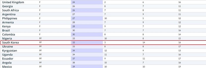 19. 국제인권단체 프리덤하우스가 발표한 ‘2014 인터넷 자유’ 보고서에 의하면 한국의 인터넷 자유는 33점(0∼100점, 100점이 최저점)으로 평가됐습니다. 33점은 나이지리아, 우크라이나와 같은 점수라고 합니다. 접근성은 훌륭하나 사용자 권리 침해와 콘텐츠 제한 항목에선 낙제 수준이랍니다. 좀 거시기 하죠?