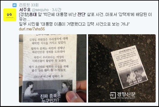 서울 마포구 홍대입구역 근처에서 박근혜 대통령의 대북정책을 비판하는 전단 만여 장이 뿌려져 경찰이 수사에 나섰다.