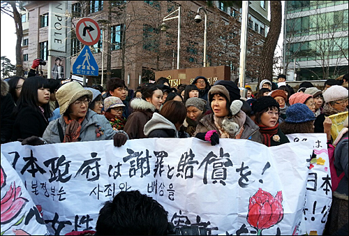 일본군 위안부 문제 해결을 위한 정기 수요집회(제1062차)가 20일 낮 12시 서울 중학동 일본대사관 앞에서 열렸다.