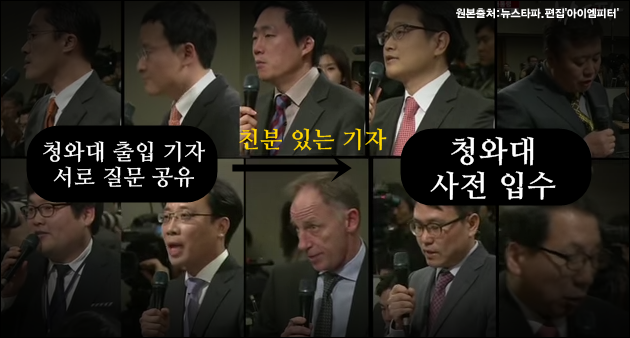 만약 청와대와 친분이 있는 기자가 자신이 알고 있는 질문을 청와대에 알려준다면 대통령도 질문 내용을 미리 알게 됩니다.