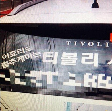 이씨는 19일 자신의 트위터에 이 같이 밝히고 사진 한장을 게재했다. 한 네티즌이 이씨에게 제보한 사진으로 해당 사진에는 ‘이효리도 춤추게 하는 티볼리’라는 광고 문구가 적혀 있었다.