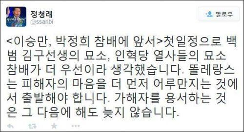 정청래, 문재인 첫 행보 비판.. “백범 김구, 인혁당 열사 묘소 참배가 우선”