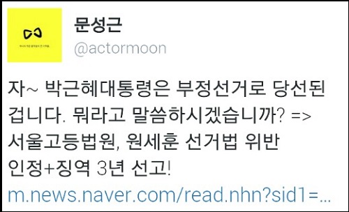 그는 “본인이 직접 선거부정을 하지 않았다손 치더라도 적어도 전 국민을 상대로 국정원의 댓글공작이 없었음을 말함으로써 허위사실을 유포한 것이 된다”며 “국회의원의 경우 ‘허위사실 유포죄’는 당선무효형을 언도 받는다”며 거듭 박 대통령의 정통성을 문제 삼았다.