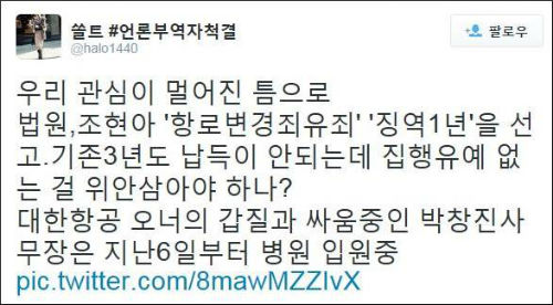 재판부는 최대 쟁점이었던 항로변경죄를 인정했다. 또한 재판부는 함께 기소된 여모 대한항공 객실승무본부 상무에게 징역 8월을, 김모 국토교통부 조사관에게는 집행유예를 선고했다.