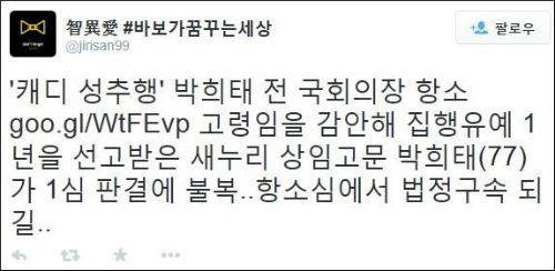 박 전 국회의장의 항소 소식에 네티즌들은 비판 목소리를 높였다.