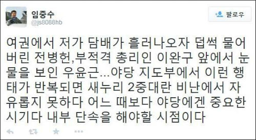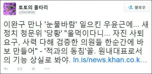 두 사람 ‘동반 눈물’에 SNS에서는 비판 목소리가 들끓었다. 이 총리에게 부적격 판정을 내렸던 야당의 원내사령탑으로서 부적절한 행동이었다는 것.