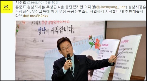 성남시의 이 같은 행보에 네티즌들은 홍준표 지사가 취임 후 보여준 정책과 이재명 시장이 그간 추진해온 정책을 비교해가며 홍 지사의 무상급식 중단 조치에 반감을 드러내고 있다.