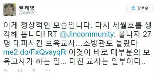 이 밖에도 “요즘 불미스러운 일들이 많았지만 저렇게 대단한 선생님들도 많다는 거.. 항상 감사드립니다”(ektm****), “대단하고 멋지고 존경스럽다”(cksd****), “선생님들 너무 잘하셨어요. 다친 아이가 없어서 너무 다행이에요”(rnjs****), “침착하게 잘 하셔서 다행으로 무사했네요. 괜시리 눈물이 나네요”(yeon****), “선생님들 정말 대단하시고 감사합니다”(rhdw****), “평소 훈련이 잘 되어 있는데다 선생님들께서 침착하게 잘 대처하신 듯 해요”(toro****) 등의 반응들이 잇따랐다.