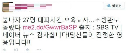 한 네티즌(chfh****)은 “진짜 당황하셨을텐데 본인이 먼저가 아니라 아이들이 우선이라 생각하시고 선생님께서 잘 대처하셨네요”라고 감탄했고 또 다른 네티즌(shdm****)은 “이런 분이 있어 세상 살아갑니다. 아직 대한민국은 따뜻한 나라입니다”라고 밝혔다.