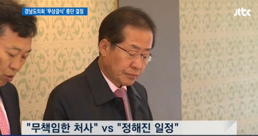 홍준표 경남도지사의 무상급식 예산지원 중단에 대해 여론조사를 실시한 결과 응답자의 절반이 넘는 54.7%가 무상급식 중단조치에 대해 반대하는 것으로 나타났다.
