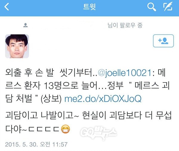 메르스 확진 판정자가 13명으로 늘어나면서 국민적 불안감이 확산되고 있는 가운데 정부 당국이 ‘메르스 괴담’ 유포자를 처벌하겠다고 밝혀 논란이 일고 있다.