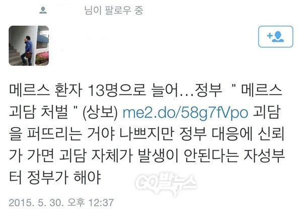 또 “메르스 확산에 아무것도 하지 않은 복지부는 무슨 처벌을 해야 할까”, “방사능도 괴담자 처벌한다더니 사실이었잖나”, “괴담을 퍼뜨리는 거야 나쁘지만 정부 대응에 신뢰가 가면 괴담 자체가 발생이 안된다는 자성부터 정부가 해야”, “메르스 괴담 처벌이 대책인가”, “정확한 정보를 알아야 뭐가 괴담인지 구별하지!”, “현실이 괴담보다 더 무섭다” 등 정부의 미온한 대처에 대한 불만도 제기하고 있다.