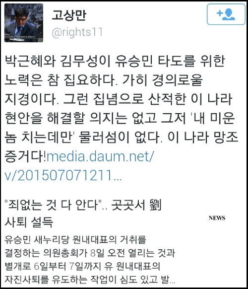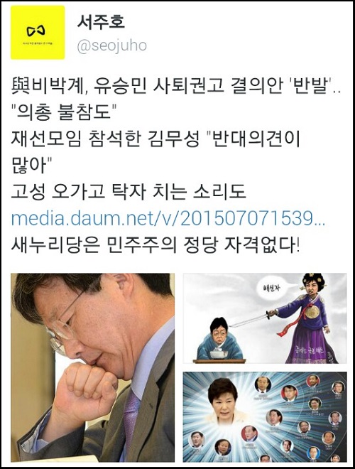한편, SNS상에서는 유승민 원내대표를 둘러싼 새누리당의 내분을 두고 비판 의견이 잇따르고 있다.