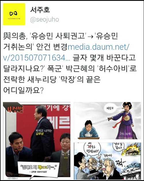 서주호 정의당 서울시당 사무처장은, 새누리당이 ‘유승민 사퇴권고안’을 ‘유승민 거취논의안’으로 명칭을 바꾼 것에 대해 “글자 몇 개 바꾼다고 달라지나요?”라고 꼬집고는 “‘폭군’ 박근혜의 ‘허수아비’로 전락한 새누리당 ‘막장’의 끝은 어디일까요?”라고 비난했다.