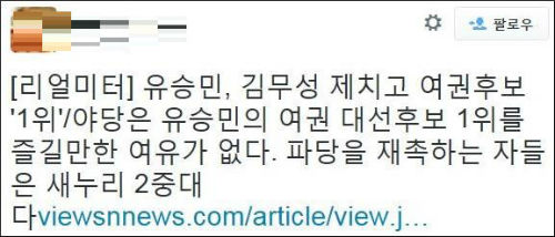 한편, 원내대표직 사퇴 후 급상승한 유 의원의 지지율에 SNS에서는 다양한 반응들을 보였다.