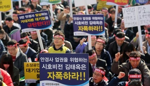 골목상권을 고사시키는 주범으로 지적받고 있는 대형마트가 이번엔 골목 안경점들의 생존권까지 위협하고 있다. 9일 전국 안경사들은 임시휴일까지 선언하고 서울역광장에 모여 이마트의 반값 안경테 판매에 항의하는 집회를 열었다. 집회규모는 주최추산 5000여명, 경찰추산 2000여명에 달했다. 대한안경사협회는 6일 공정거래위원회에 이마트를 제소한데 이어 정용진 대표에게도 소송을 걸 계획이다. 이마트에 안경을 독점 공급한 것으로 추정되는 안경전문기업 시호비전(회장 김태옥)도 공정위의 조사대상에 오를 전망이다.