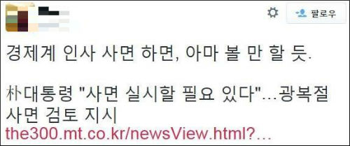 네티즌들은 박 대통령의 ‘사면’ 언급에 경제인·정치인에 대한 사면은 반대라는 의견들을 보였다.