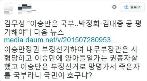 한 네티즌(생각**)은 “이승만은 국부가 아니다. 친일파 청산하지 못한 반민주 독재자다”라고 지적했고, 또 다른 네티즌(상식**)은 “자식 버리고 거짓말하고 혼자 살자고 도망간 게 아버지냐?”라고 비꼬았다.