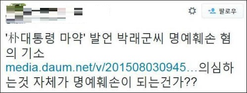 한편, 허재현 <한겨레> 기자는 해당 소식을 접한 후 SNS에 “당황스럽다”며 “마약을 했다고 한 게 아니고 확인해보자고 말만 한 걸로 기소된거군요. 정치인이 돈 받은 것 확인해보자고 말만해도 기소 되겠네요”라고 꼬집었다.