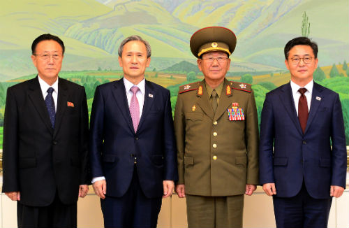 | <남북 고위급 합의문 전문> 남북 고위당국자접촉이 2015년 8월22일부터 24일까지 판문점에서 진행되었다. 접촉에는 남측의 김관진 국가안보실장과 홍용표 통일부 장관, 북측의 황병서 조선인민군 총정치국장과 김양건 조선노동당 중앙위원회 비서가 참가하였다. 쌍방은 접촉에서 최근 남북 사이에 고조된 군사적 긴장상태를 해소하고 남북관계를 발전시켜 나가기 위한 문제들을 협의하고 다음과 같이 합의하였다. 1. 남과 북은 남북관계를 개선하기 위한 당국회담을 서울 또는 평양에서 빠른 시일 내에 개최하며 앞으로 여러 분야의 대화와 협상을 진행해 나가기로 하였다. 2. 북측은 최근 군사분계선 비무장지대 남측지역에서 발생한 지뢰 폭발로 남측 군인들이 부상을 당한 것에 대하여 유감을 표명하였다. 3. 남측은 비정상적인 사태가 발생하지 않는 한 군사분계선 일대에서 모든 확성기 방송을 8월25일 12시부터 중단하기로 하였다. 4. 북측은 준전시상태를 해제하기로 하였다. 5. 남과 북은 올해 추석을 계기로 이산가족 상봉을 진행하고, 앞으로 계속하기로 하였으며, 이를 위한 적십자실무접촉을 9월초에 가지기로 하였다. 6. 남과 북은 다양한 분야에서 민간 교류를 활성화하기로 하였다. |
