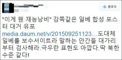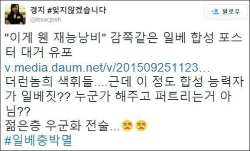 한 네티즌(현*)은 “도대체 저 일베들의 사상을 이해 못 하겠다”고 꼬집었고, 또 다른 네티즌(둥글**)은 “이 정도면 치료를 받아야한다”고 비판했다.