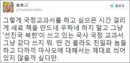 정부가 내주 한국사 교과서의 국정화 여부를 결정할 것으로 보여 SNS 등에서 비판 목소리가 높아지고 있다.