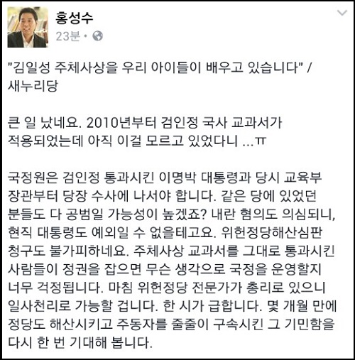 그는 이어 “새누리당이 이 난리를 치는 부분을 찾아보자”면서 고등학교 금성교과서 내용을 예로 들었다.