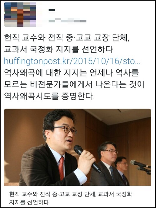 네티즌 ‘Rla****’는 “학교명하고 전공이 뭔지 100% 오픈하자”며 “4대강 때처럼 어영부영 넘기지 말자”고 지적했고, 또 다른 네티즌 ‘green****’는 “비역사 전문가들이 국정화에 찬성한다는 무슨 뜻일까. 엄청 정치적이란 거겠지”라며 의구심을 나타내기도 했다.