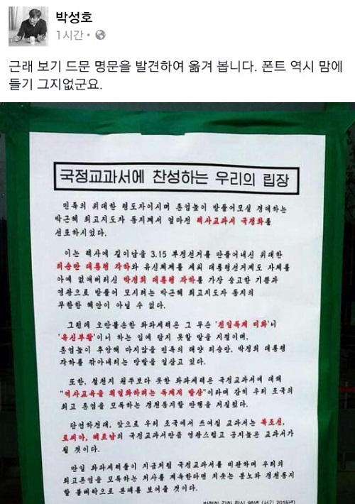 역사교과서 국정화를 반대하는 대학생들의 대자보가 온라인상에서 연일 화제가 되고 있다.