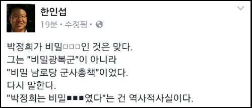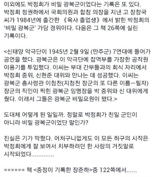 그는 “새누리당 이장우 대변인이 마침내 ‘박정희가 비밀광복군이었다’는 괴상한 주장을 공식적으로 언급했다”고 비난하며 “그 진실을 <중정이 기록한 장준하>에서 이미 썼다”고 밝혔다