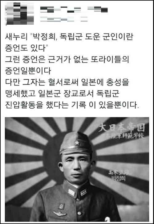 새누리당이 역사교과서 국정화가 박정희 전 대통령의 친일․독재 행위를 미화하기 위한 것이라는 야당의 주장을 반박하는 과정에서 “박정희 전 대통령이 독립군을 도왔다는 증언이 있다”고 주장해 논란이 일고 있다.