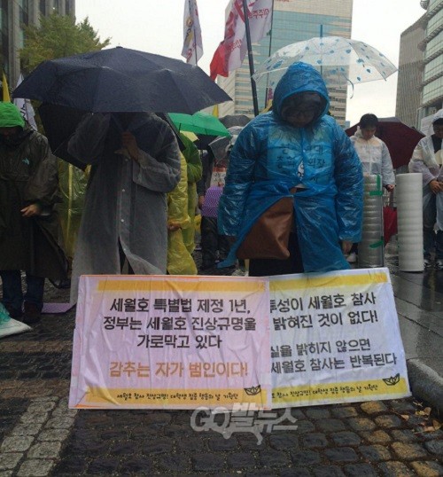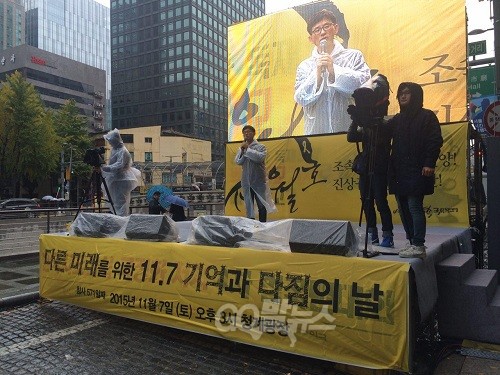 세월호의 조속하고 온전한 인양과 진상규명 방해 행위를 규탄하는 ‘11.7 기억과 다짐의 날’ 행사가 비오는 토요일 오후 서울 청계광장에서 진행됐다.
