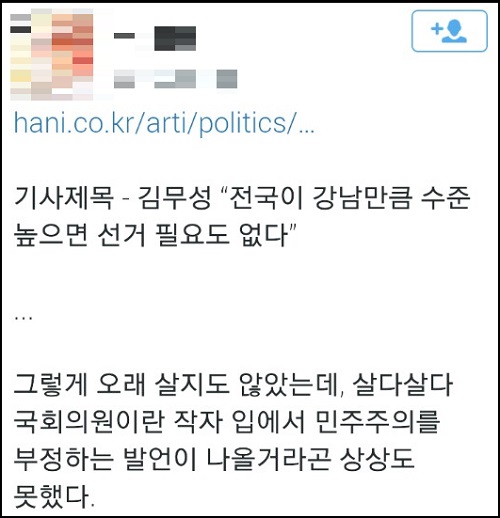 전국이 강남만큼 수준 높으면 선거 필요없다?.. “조만간 선거제도도 없애자고 하겠네”