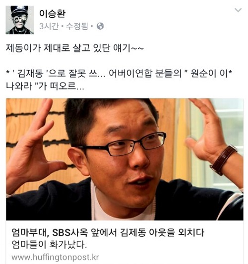 이들의 ‘김제동 방송 퇴출 시위’ 소식에 가수 이승환 씨는 11일 자신의 페이스북에 “제동이가 제대로 살고 있단 얘기”라고 맞받았다.