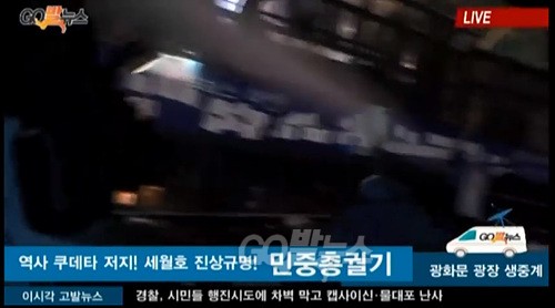 방독면을 착용하고 영상을 찍던 카메라 기자와 리포트를 하던 기자 2명이 경찰이 쏘는 최루액을 맞는 모습이 go발뉴스의 카메라에 잡혔다.