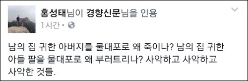 홍성태 교수 “남의 집 귀한 아버지를 물대포로 왜 죽이나?…사악한 것들”