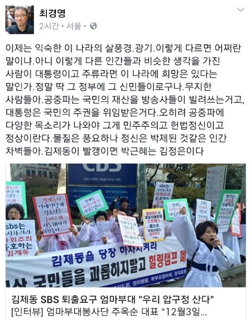 최경영 기자 “인간 차벽들아, 김제동이 빨갱이면 박근혜는 김정은”