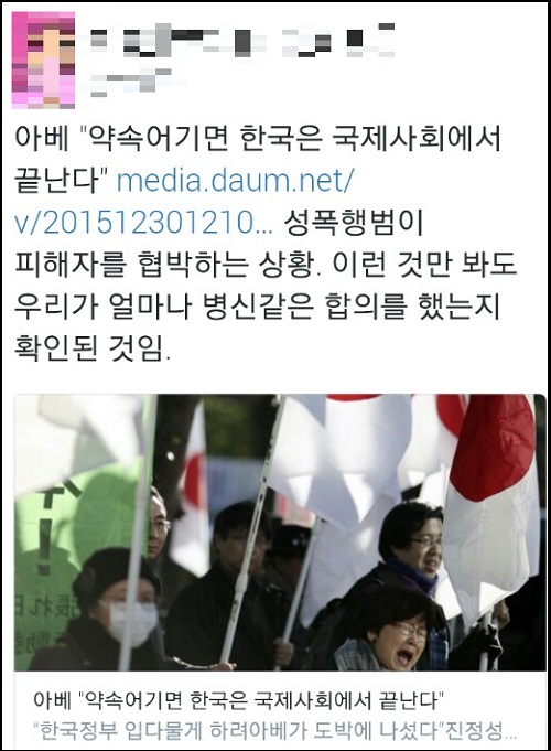 일본의 이 같은 태도에 대해 네티즌들은 “성폭행범이 도리어 피해자를 협박하는 상황”이라는 등 분통을 터트렸다.