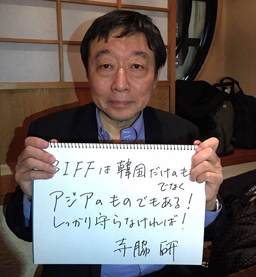 김지석 BIFF 수석프로그래머가 자신의 페이스북을 통해 공개한 사진들에는 해외 영화인들이 부산국제영화제 응원 메시지를 들고 있는 모습이 담겨있다.