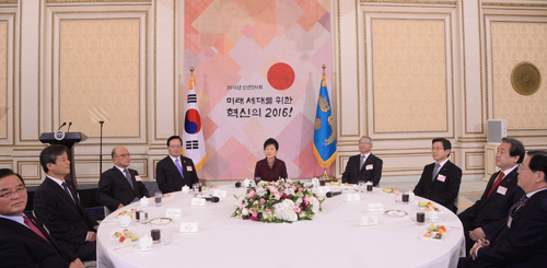 박근혜 대통령은 4일 정의화 국회의장을 비롯해 5부 요인과 김무성 새누리당 대표 등이 참석한 가운데 청와대에서 신년인사회를 가졌다.